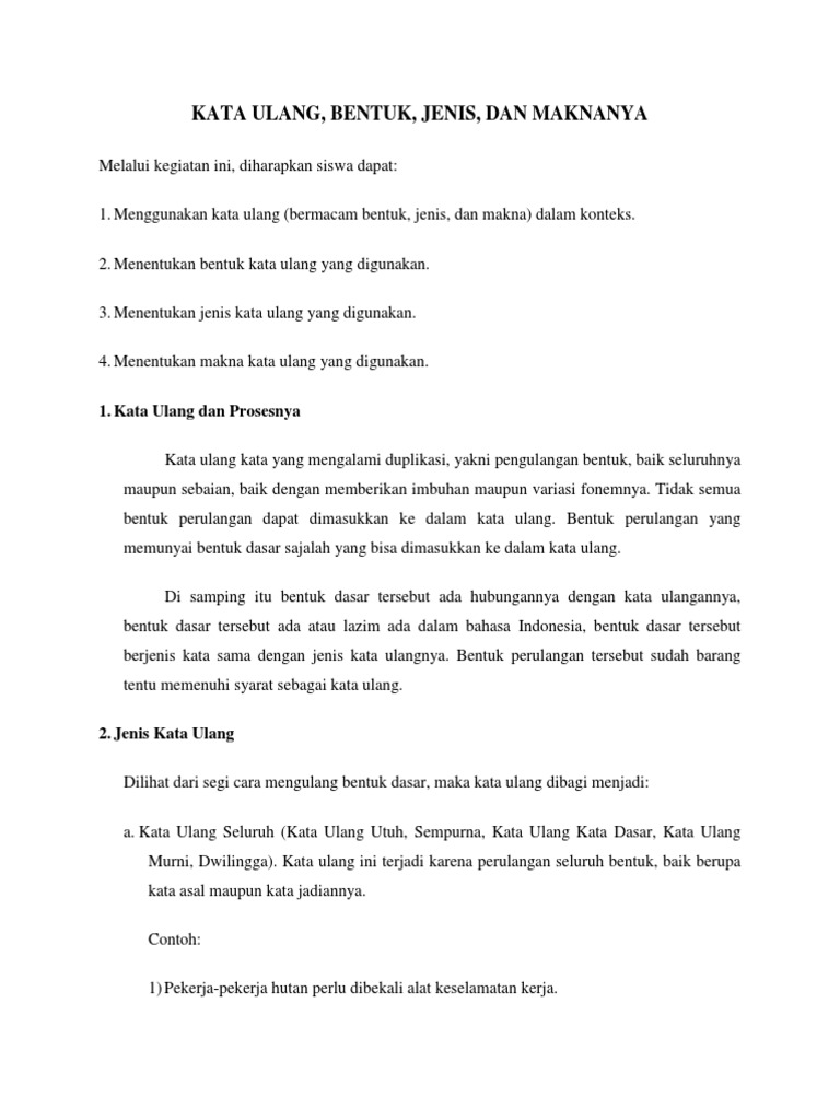 Kata Ulang Alam Bahasa Ino Onesia Tinjauan Sint Aksis