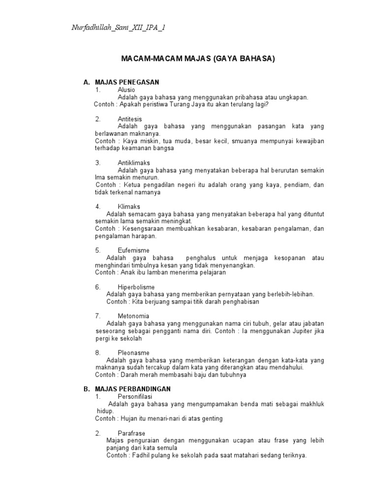 Doc Ragam Bahasa Beserta Contohnya Gilbert Pattipeilohy