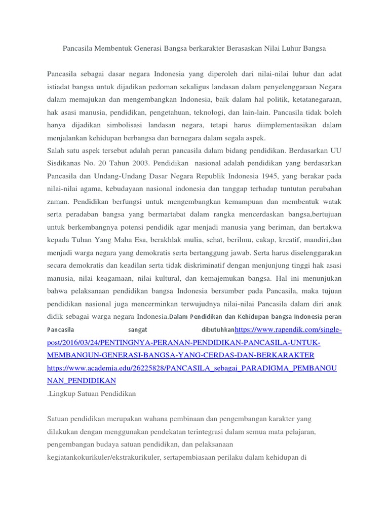 Pancasila Dan Pendidikan Dalam Membangun Karakter Bangsa