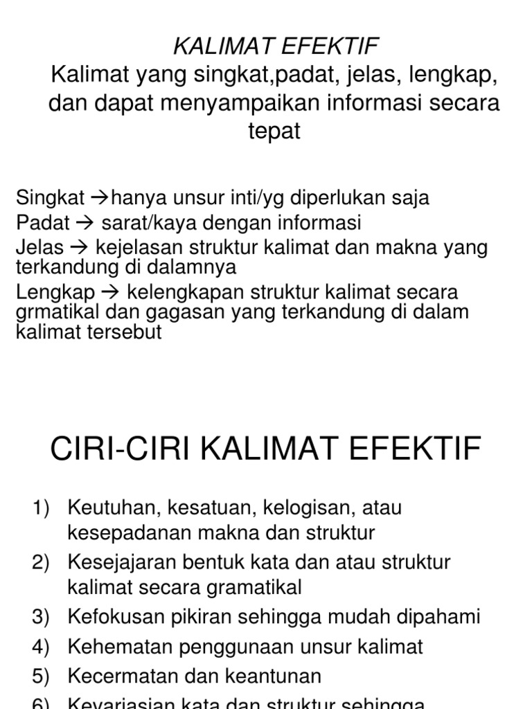 Tentu saja karena kita berbicara tentang bahasa indonesia kaidah yang menjadi patokan kalimat efektif dalam bahasan ini adalah kaidah bahasa indonesia menurut ejaan yang disempurnakan eyd. Kalimat efektif merupakan susunan kata yang mengikuti kaidah kebahasaan secara baik dan benar. Kata kata yang menimbulkan makna ganda seringkali menyebabkan pembaca atau pendengar kebingungan.