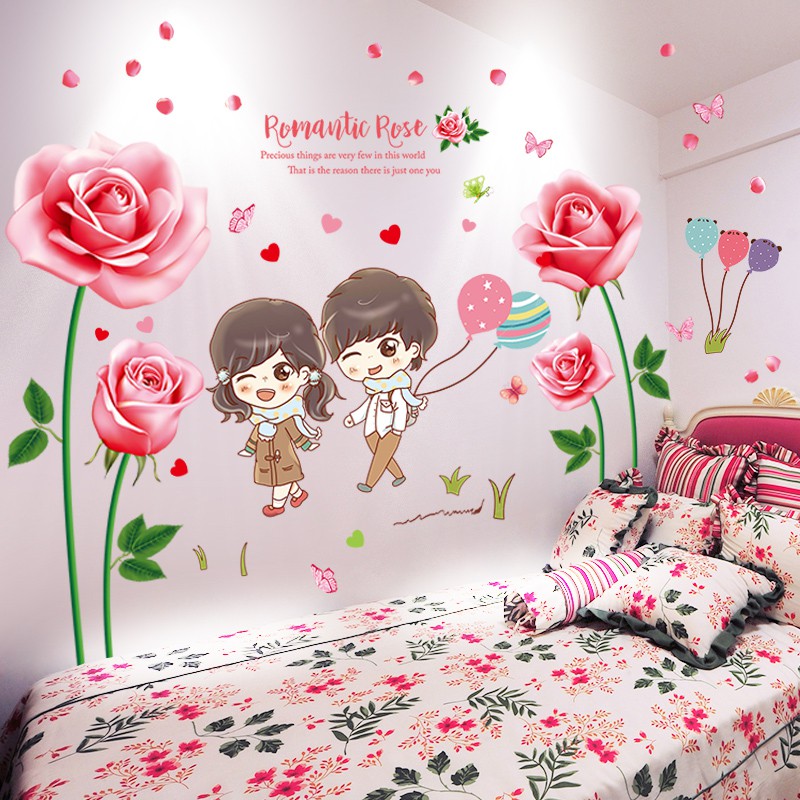 Rose Pink Dinding Stiker Perekat Diri Wallpaper Kamar Tidur Gadis Hangat Kamar Warna Merah Bersih