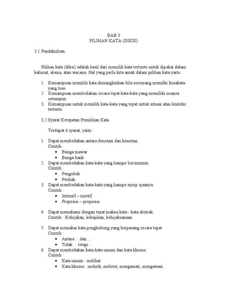 Bab 3 Pilihan Kata Diksi 3 1 Pendahuluan Doc Document