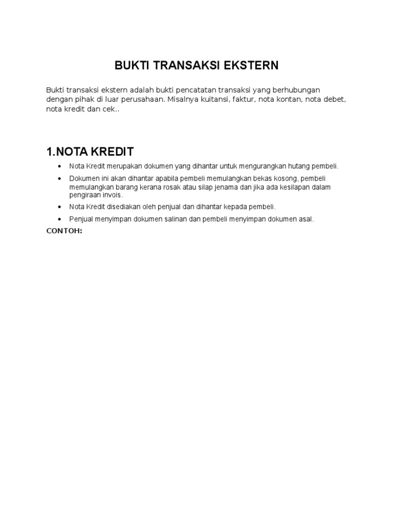 Contoh Nota Kontan Kredit Dan Debit Kumpulan