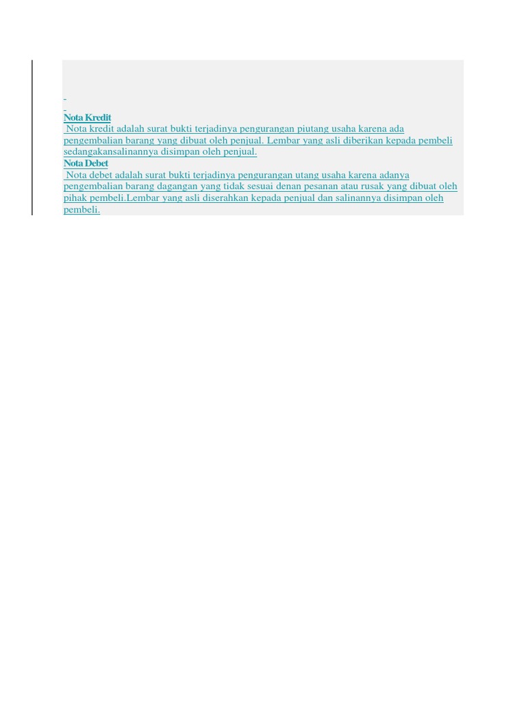 Pengertian Kuintansi Nota Debit Faktur Nota Kredit Nota