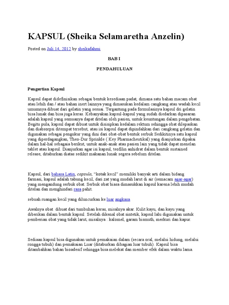 Kapsul Adalah Sediaan Padat Yang Terdiri Dari Obat Dalam