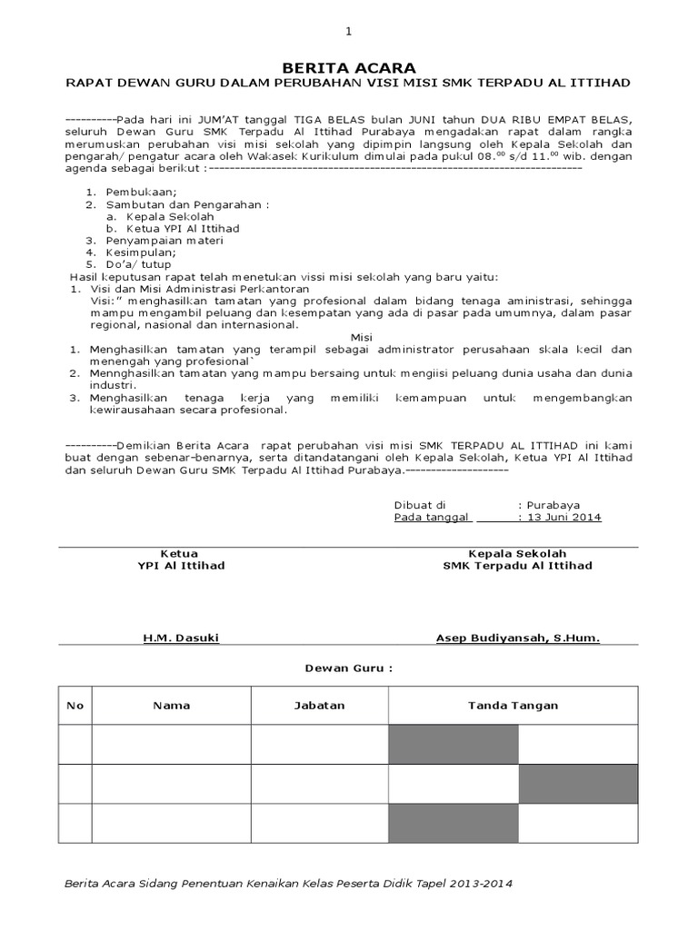 Berita acara daftar hadir sk penetapanperumusan visi misi tujuan sekolah ini merupakan file terbaru yang akan saya bagikan dalam kesempatan kali ini. Terimakasih sudah share artikel ini. Salam dari saya mantan ketua osis sma negeri 2 balikpapan periode 20132014.