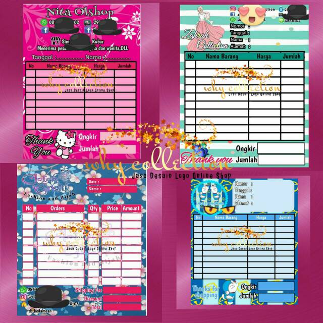 Cetak Nota Kwitansi Olshop Karakter Full Warna Dan Motif Murah Mini Desain Gratis