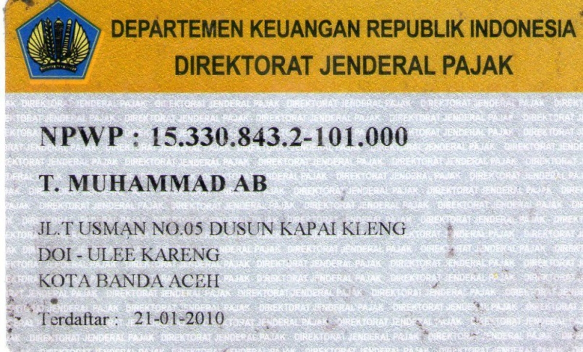 Nomor Penduduk Wajib Pajak Npwp Karang Taruana Mahameru