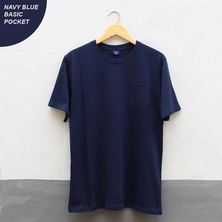 Kaos Polos Seri Pocket Warna Navy Blue Cotton Combed 30s Basic T Shirt Pocket Pria Wanita
