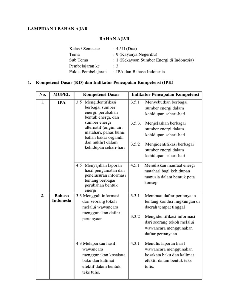 Pengembangan Bahan Ajar Ipa Materi Energi Dalam Kehidupan