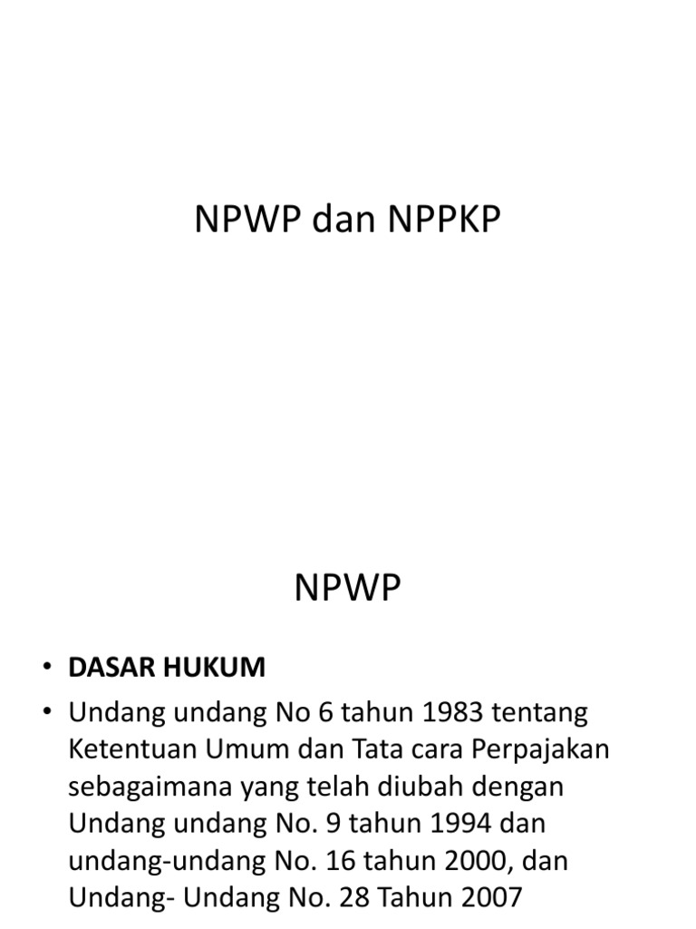 Nomor Pokok Wajib Pajak Npwp Ppt Download