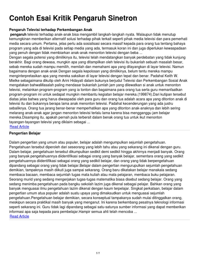 Contoh Esai Kritik Pengaruh Sinetron