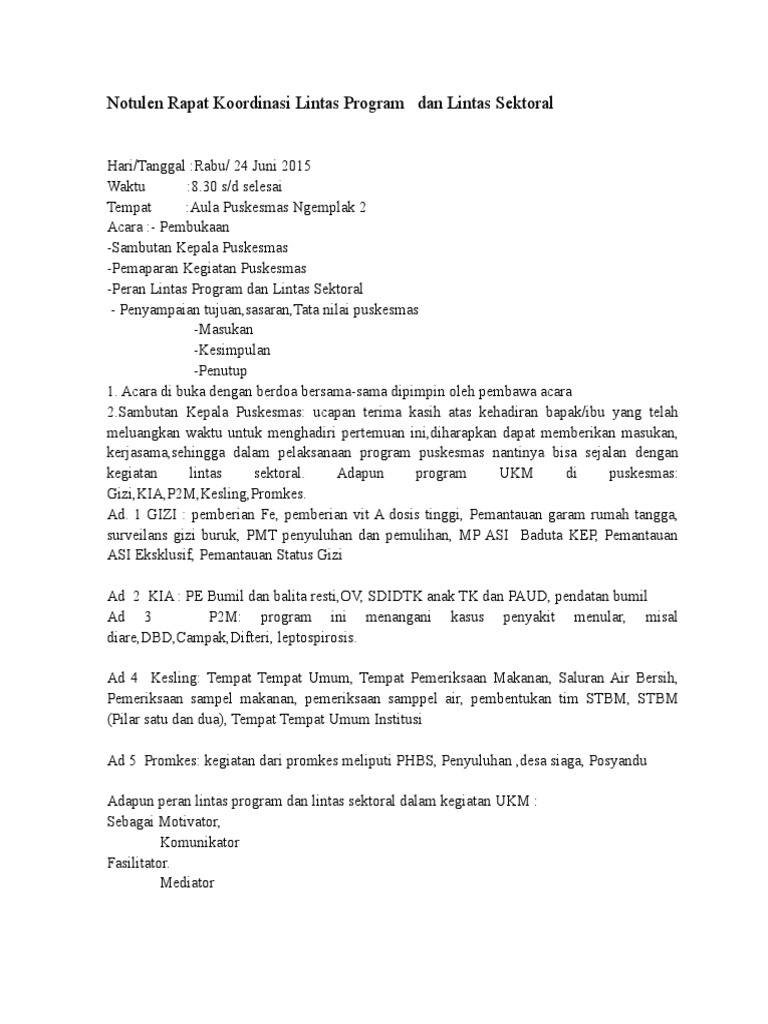 Notulen Rapat Koordinasi Lintas Program Dan Lintas Sektoral