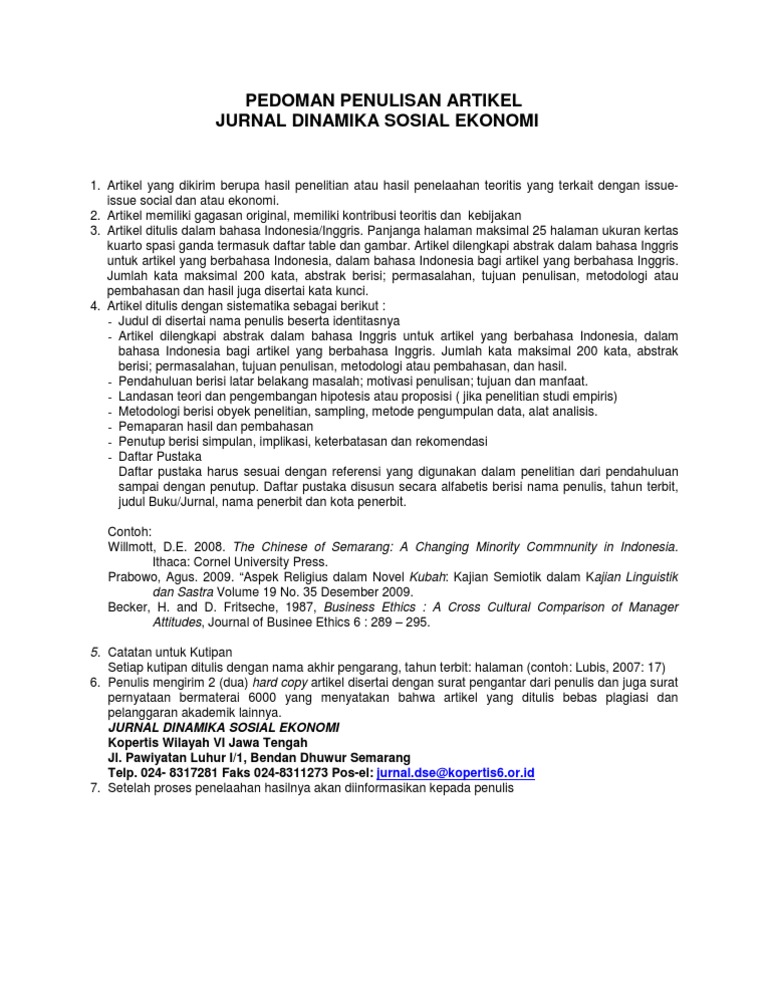 Pedoman Penulisan Artikel Jurnal Dinamika Sosial Ekonomi