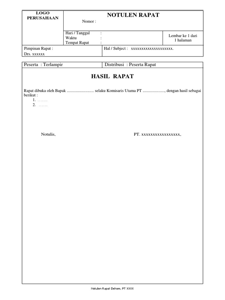 Contoh Notulen Rapat Docx Document