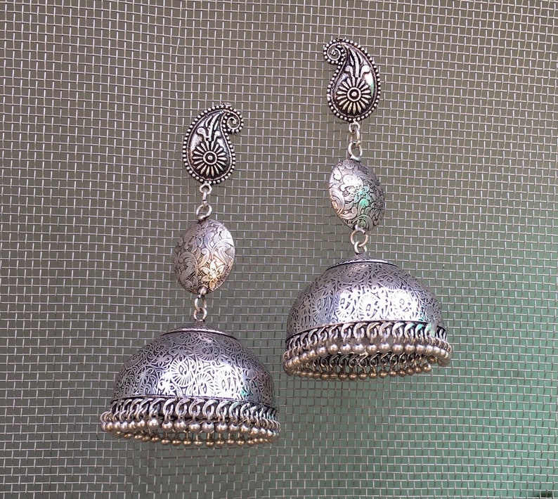 Indian Jhumka Earrings Silver Dangle Drop Earrings Big Jhumka Earrings Indian Jumki Jhumka Stud Earrings German Silver